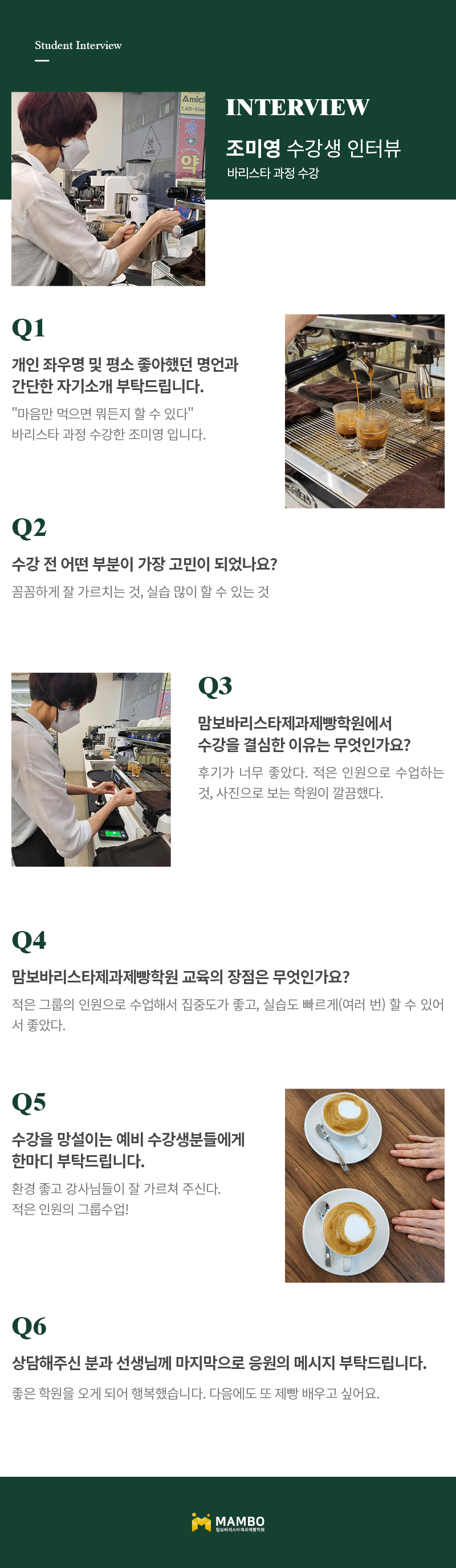 제1조 (개인정보 수집에 대한 동의)맘보교육그룹(이하 회사)는 이용자들이 회사의 개인정보취급방침 또는 이용약관의 내용에 대하여 “동의”버튼 또는 “취소”버튼을 클릭할 수 있는 절차를 마련하여, “동의”버튼을 클릭하면 개인정보 수집에 대해 동의한 것으로 봅니다. 제2조 (개인정보 수집항목) 온라인 문의를 통한 상담을 위해 처리하는 개인정보 항목은 아래와 같습니다. 수집항목 : 성명, 이메일, 전화번호 제3조 (개인정보의 이용목적) 회사는 이용자의 사전 동의 없이는 이용자의 개인 정보를 공개하지 않으며, 원활한 고객상담, 각종 서비스의 제공을 위해 아래와 같이 개인정보를 수집하고 있습니다. 모든 정보는 상기 목적에 필요한 용도 이외로는 사용되지 않으며 수집 정보의 범위나 사용 목적, 용도가 변경될 시에는 반드시 사전 동의를 구할 것입니다. - 성명 : 제품상담에 따른 본인 확인 - 이메일, 전화번호 : 제품상담 및 이벤트 관련 고지사항 전달, 새로운 서비스 및 신상품 정보 제공(DM, SMS, 이메일 등 이용) 이용자는 개인정보의 수집/이용에 대한 동의를 거부할 수 있습니다. 다만, 동의를 거부하는 경우 온라인 문의를 통한 상담은 불가하며 서비스 이용 및 혜택 제공에 제한을 받을 수 있습니다. 제4조 (개인정보의 보유 및 이용기간) 원칙적으로 개인정보 수집 및 이용목적이 달성된 후에는 해당 정보를 지체 없이 파기합니다. 그리고 상법, 전자상거래 등에서의 소비자보호에 관한 법률 등 관계법렵의 규정에 의하여 보존할 필요가 있는 경우 회사는 관계법령에서 정한 일정한 기간 동안 정보를 보관합니다. 이 경우 회사는 보관하는 정보를 그 보관의 목적으로만 이용하며 보존기간은 아래와 같습니다. - 계약 또는 청약철회 등에 관한 기록 : 5년(전자상거래등에서의 소비자보호에 관한 법률) - 소비자의 불만 또는 분쟁처리에 관한 기록 : 3년(전자상거래등에서의 소비자 보호에 관한 법률) - 시용정보의 수집/처리 및 이용 등에 관한 기록 : 3년(신용정보의 이용 및 보호에 관한 법률) - 회사는 귀중한 이용자의 개인정보를 안전하게 처리하며, 유출의 방지를 위하여 다음과 같은 방법을 통하여 개인정보를 파기합니다. - 종이에 출력된 개인정보는 분쇄기로 분쇄하거나 소각을 통하여 파기합니다. - 전자적 파일 형태로 저장된 개인정보는 기록을 재생할 수 없는 기술적 방법을 사용하여 삭제합니다.