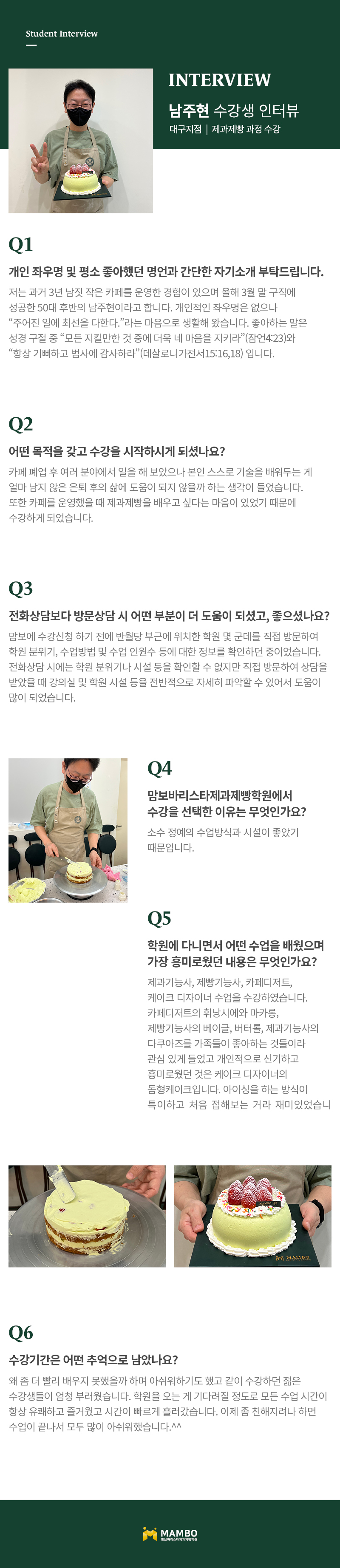 제1조 (개인정보 수집에 대한 동의)맘보교육그룹(이하 회사)는 이용자들이 회사의 개인정보취급방침 또는 이용약관의 내용에 대하여 “동의”버튼 또는 “취소”버튼을 클릭할 수 있는 절차를 마련하여, “동의”버튼을 클릭하면 개인정보 수집에 대해 동의한 것으로 봅니다. 제2조 (개인정보 수집항목) 온라인 문의를 통한 상담을 위해 처리하는 개인정보 항목은 아래와 같습니다. 수집항목 : 성명, 이메일, 전화번호 제3조 (개인정보의 이용목적) 회사는 이용자의 사전 동의 없이는 이용자의 개인 정보를 공개하지 않으며, 원활한 고객상담, 각종 서비스의 제공을 위해 아래와 같이 개인정보를 수집하고 있습니다. 모든 정보는 상기 목적에 필요한 용도 이외로는 사용되지 않으며 수집 정보의 범위나 사용 목적, 용도가 변경될 시에는 반드시 사전 동의를 구할 것입니다. - 성명 : 제품상담에 따른 본인 확인 - 이메일, 전화번호 : 제품상담 및 이벤트 관련 고지사항 전달, 새로운 서비스 및 신상품 정보 제공(DM, SMS, 이메일 등 이용) 이용자는 개인정보의 수집/이용에 대한 동의를 거부할 수 있습니다. 다만, 동의를 거부하는 경우 온라인 문의를 통한 상담은 불가하며 서비스 이용 및 혜택 제공에 제한을 받을 수 있습니다. 제4조 (개인정보의 보유 및 이용기간) 원칙적으로 개인정보 수집 및 이용목적이 달성된 후에는 해당 정보를 지체 없이 파기합니다. 그리고 상법, 전자상거래 등에서의 소비자보호에 관한 법률 등 관계법렵의 규정에 의하여 보존할 필요가 있는 경우 회사는 관계법령에서 정한 일정한 기간 동안 정보를 보관합니다. 이 경우 회사는 보관하는 정보를 그 보관의 목적으로만 이용하며 보존기간은 아래와 같습니다. - 계약 또는 청약철회 등에 관한 기록 : 5년(전자상거래등에서의 소비자보호에 관한 법률) - 소비자의 불만 또는 분쟁처리에 관한 기록 : 3년(전자상거래등에서의 소비자 보호에 관한 법률) - 시용정보의 수집/처리 및 이용 등에 관한 기록 : 3년(신용정보의 이용 및 보호에 관한 법률) - 회사는 귀중한 이용자의 개인정보를 안전하게 처리하며, 유출의 방지를 위하여 다음과 같은 방법을 통하여 개인정보를 파기합니다. - 종이에 출력된 개인정보는 분쇄기로 분쇄하거나 소각을 통하여 파기합니다. - 전자적 파일 형태로 저장된 개인정보는 기록을 재생할 수 없는 기술적 방법을 사용하여 삭제합니다.