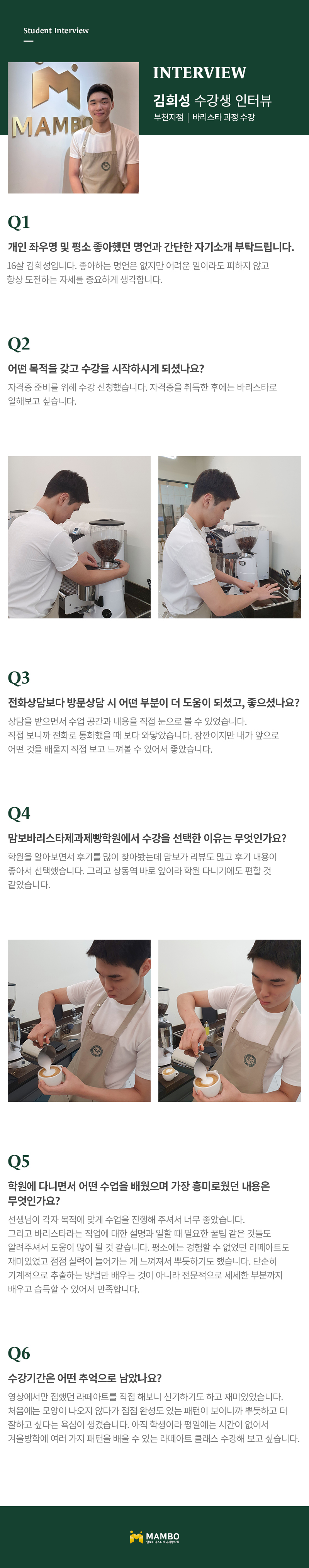 제1조 (개인정보 수집에 대한 동의)맘보교육그룹(이하 회사)는 이용자들이 회사의 개인정보취급방침 또는 이용약관의 내용에 대하여 “동의”버튼 또는 “취소”버튼을 클릭할 수 있는 절차를 마련하여, “동의”버튼을 클릭하면 개인정보 수집에 대해 동의한 것으로 봅니다. 제2조 (개인정보 수집항목) 온라인 문의를 통한 상담을 위해 처리하는 개인정보 항목은 아래와 같습니다. 수집항목 : 성명, 이메일, 전화번호 제3조 (개인정보의 이용목적) 회사는 이용자의 사전 동의 없이는 이용자의 개인 정보를 공개하지 않으며, 원활한 고객상담, 각종 서비스의 제공을 위해 아래와 같이 개인정보를 수집하고 있습니다. 모든 정보는 상기 목적에 필요한 용도 이외로는 사용되지 않으며 수집 정보의 범위나 사용 목적, 용도가 변경될 시에는 반드시 사전 동의를 구할 것입니다. - 성명 : 제품상담에 따른 본인 확인 - 이메일, 전화번호 : 제품상담 및 이벤트 관련 고지사항 전달, 새로운 서비스 및 신상품 정보 제공(DM, SMS, 이메일 등 이용) 이용자는 개인정보의 수집/이용에 대한 동의를 거부할 수 있습니다. 다만, 동의를 거부하는 경우 온라인 문의를 통한 상담은 불가하며 서비스 이용 및 혜택 제공에 제한을 받을 수 있습니다. 제4조 (개인정보의 보유 및 이용기간) 원칙적으로 개인정보 수집 및 이용목적이 달성된 후에는 해당 정보를 지체 없이 파기합니다. 그리고 상법, 전자상거래 등에서의 소비자보호에 관한 법률 등 관계법렵의 규정에 의하여 보존할 필요가 있는 경우 회사는 관계법령에서 정한 일정한 기간 동안 정보를 보관합니다. 이 경우 회사는 보관하는 정보를 그 보관의 목적으로만 이용하며 보존기간은 아래와 같습니다. - 계약 또는 청약철회 등에 관한 기록 : 5년(전자상거래등에서의 소비자보호에 관한 법률) - 소비자의 불만 또는 분쟁처리에 관한 기록 : 3년(전자상거래등에서의 소비자 보호에 관한 법률) - 시용정보의 수집/처리 및 이용 등에 관한 기록 : 3년(신용정보의 이용 및 보호에 관한 법률) - 회사는 귀중한 이용자의 개인정보를 안전하게 처리하며, 유출의 방지를 위하여 다음과 같은 방법을 통하여 개인정보를 파기합니다. - 종이에 출력된 개인정보는 분쇄기로 분쇄하거나 소각을 통하여 파기합니다. - 전자적 파일 형태로 저장된 개인정보는 기록을 재생할 수 없는 기술적 방법을 사용하여 삭제합니다.