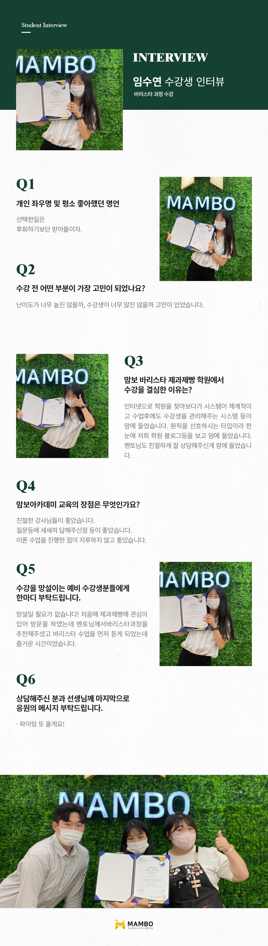 제1조 (개인정보 수집에 대한 동의)맘보교육그룹(이하 회사)는 이용자들이 회사의 개인정보취급방침 또는 이용약관의 내용에 대하여 “동의”버튼 또는 “취소”버튼을 클릭할 수 있는 절차를 마련하여, “동의”버튼을 클릭하면 개인정보 수집에 대해 동의한 것으로 봅니다. 제2조 (개인정보 수집항목) 온라인 문의를 통한 상담을 위해 처리하는 개인정보 항목은 아래와 같습니다. 수집항목 : 성명, 이메일, 전화번호 제3조 (개인정보의 이용목적) 회사는 이용자의 사전 동의 없이는 이용자의 개인 정보를 공개하지 않으며, 원활한 고객상담, 각종 서비스의 제공을 위해 아래와 같이 개인정보를 수집하고 있습니다. 모든 정보는 상기 목적에 필요한 용도 이외로는 사용되지 않으며 수집 정보의 범위나 사용 목적, 용도가 변경될 시에는 반드시 사전 동의를 구할 것입니다. - 성명 : 제품상담에 따른 본인 확인 - 이메일, 전화번호 : 제품상담 및 이벤트 관련 고지사항 전달, 새로운 서비스 및 신상품 정보 제공(DM, SMS, 이메일 등 이용) 이용자는 개인정보의 수집/이용에 대한 동의를 거부할 수 있습니다. 다만, 동의를 거부하는 경우 온라인 문의를 통한 상담은 불가하며 서비스 이용 및 혜택 제공에 제한을 받을 수 있습니다. 제4조 (개인정보의 보유 및 이용기간) 원칙적으로 개인정보 수집 및 이용목적이 달성된 후에는 해당 정보를 지체 없이 파기합니다. 그리고 상법, 전자상거래 등에서의 소비자보호에 관한 법률 등 관계법렵의 규정에 의하여 보존할 필요가 있는 경우 회사는 관계법령에서 정한 일정한 기간 동안 정보를 보관합니다. 이 경우 회사는 보관하는 정보를 그 보관의 목적으로만 이용하며 보존기간은 아래와 같습니다. - 계약 또는 청약철회 등에 관한 기록 : 5년(전자상거래등에서의 소비자보호에 관한 법률) - 소비자의 불만 또는 분쟁처리에 관한 기록 : 3년(전자상거래등에서의 소비자 보호에 관한 법률) - 시용정보의 수집/처리 및 이용 등에 관한 기록 : 3년(신용정보의 이용 및 보호에 관한 법률) - 회사는 귀중한 이용자의 개인정보를 안전하게 처리하며, 유출의 방지를 위하여 다음과 같은 방법을 통하여 개인정보를 파기합니다. - 종이에 출력된 개인정보는 분쇄기로 분쇄하거나 소각을 통하여 파기합니다. - 전자적 파일 형태로 저장된 개인정보는 기록을 재생할 수 없는 기술적 방법을 사용하여 삭제합니다.