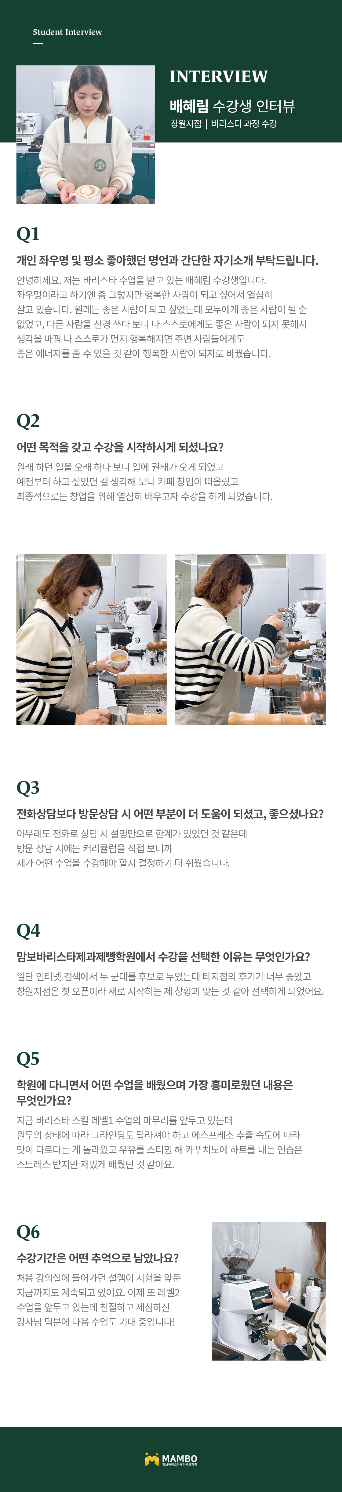 제1조 (개인정보 수집에 대한 동의)맘보교육그룹(이하 회사)는 이용자들이 회사의 개인정보취급방침 또는 이용약관의 내용에 대하여 “동의”버튼 또는 “취소”버튼을 클릭할 수 있는 절차를 마련하여, “동의”버튼을 클릭하면 개인정보 수집에 대해 동의한 것으로 봅니다. 제2조 (개인정보 수집항목) 온라인 문의를 통한 상담을 위해 처리하는 개인정보 항목은 아래와 같습니다. 수집항목 : 성명, 이메일, 전화번호 제3조 (개인정보의 이용목적) 회사는 이용자의 사전 동의 없이는 이용자의 개인 정보를 공개하지 않으며, 원활한 고객상담, 각종 서비스의 제공을 위해 아래와 같이 개인정보를 수집하고 있습니다. 모든 정보는 상기 목적에 필요한 용도 이외로는 사용되지 않으며 수집 정보의 범위나 사용 목적, 용도가 변경될 시에는 반드시 사전 동의를 구할 것입니다. - 성명 : 제품상담에 따른 본인 확인 - 이메일, 전화번호 : 제품상담 및 이벤트 관련 고지사항 전달, 새로운 서비스 및 신상품 정보 제공(DM, SMS, 이메일 등 이용) 이용자는 개인정보의 수집/이용에 대한 동의를 거부할 수 있습니다. 다만, 동의를 거부하는 경우 온라인 문의를 통한 상담은 불가하며 서비스 이용 및 혜택 제공에 제한을 받을 수 있습니다. 제4조 (개인정보의 보유 및 이용기간) 원칙적으로 개인정보 수집 및 이용목적이 달성된 후에는 해당 정보를 지체 없이 파기합니다. 그리고 상법, 전자상거래 등에서의 소비자보호에 관한 법률 등 관계법렵의 규정에 의하여 보존할 필요가 있는 경우 회사는 관계법령에서 정한 일정한 기간 동안 정보를 보관합니다. 이 경우 회사는 보관하는 정보를 그 보관의 목적으로만 이용하며 보존기간은 아래와 같습니다. - 계약 또는 청약철회 등에 관한 기록 : 5년(전자상거래등에서의 소비자보호에 관한 법률) - 소비자의 불만 또는 분쟁처리에 관한 기록 : 3년(전자상거래등에서의 소비자 보호에 관한 법률) - 시용정보의 수집/처리 및 이용 등에 관한 기록 : 3년(신용정보의 이용 및 보호에 관한 법률) - 회사는 귀중한 이용자의 개인정보를 안전하게 처리하며, 유출의 방지를 위하여 다음과 같은 방법을 통하여 개인정보를 파기합니다. - 종이에 출력된 개인정보는 분쇄기로 분쇄하거나 소각을 통하여 파기합니다. - 전자적 파일 형태로 저장된 개인정보는 기록을 재생할 수 없는 기술적 방법을 사용하여 삭제합니다.