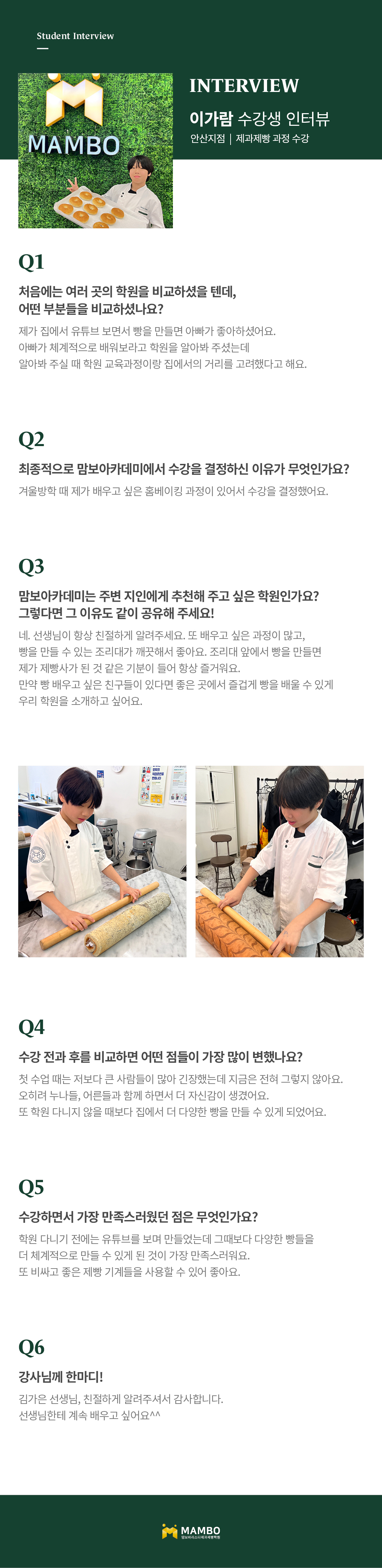 제1조 (개인정보 수집에 대한 동의)맘보교육그룹(이하 회사)는 이용자들이 회사의 개인정보취급방침 또는 이용약관의 내용에 대하여 “동의”버튼 또는 “취소”버튼을 클릭할 수 있는 절차를 마련하여, “동의”버튼을 클릭하면 개인정보 수집에 대해 동의한 것으로 봅니다. 제2조 (개인정보 수집항목) 온라인 문의를 통한 상담을 위해 처리하는 개인정보 항목은 아래와 같습니다. 수집항목 : 성명, 이메일, 전화번호 제3조 (개인정보의 이용목적) 회사는 이용자의 사전 동의 없이는 이용자의 개인 정보를 공개하지 않으며, 원활한 고객상담, 각종 서비스의 제공을 위해 아래와 같이 개인정보를 수집하고 있습니다. 모든 정보는 상기 목적에 필요한 용도 이외로는 사용되지 않으며 수집 정보의 범위나 사용 목적, 용도가 변경될 시에는 반드시 사전 동의를 구할 것입니다. - 성명 : 제품상담에 따른 본인 확인 - 이메일, 전화번호 : 제품상담 및 이벤트 관련 고지사항 전달, 새로운 서비스 및 신상품 정보 제공(DM, SMS, 이메일 등 이용) 이용자는 개인정보의 수집/이용에 대한 동의를 거부할 수 있습니다. 다만, 동의를 거부하는 경우 온라인 문의를 통한 상담은 불가하며 서비스 이용 및 혜택 제공에 제한을 받을 수 있습니다. 제4조 (개인정보의 보유 및 이용기간) 원칙적으로 개인정보 수집 및 이용목적이 달성된 후에는 해당 정보를 지체 없이 파기합니다. 그리고 상법, 전자상거래 등에서의 소비자보호에 관한 법률 등 관계법렵의 규정에 의하여 보존할 필요가 있는 경우 회사는 관계법령에서 정한 일정한 기간 동안 정보를 보관합니다. 이 경우 회사는 보관하는 정보를 그 보관의 목적으로만 이용하며 보존기간은 아래와 같습니다. - 계약 또는 청약철회 등에 관한 기록 : 5년(전자상거래등에서의 소비자보호에 관한 법률) - 소비자의 불만 또는 분쟁처리에 관한 기록 : 3년(전자상거래등에서의 소비자 보호에 관한 법률) - 시용정보의 수집/처리 및 이용 등에 관한 기록 : 3년(신용정보의 이용 및 보호에 관한 법률) - 회사는 귀중한 이용자의 개인정보를 안전하게 처리하며, 유출의 방지를 위하여 다음과 같은 방법을 통하여 개인정보를 파기합니다. - 종이에 출력된 개인정보는 분쇄기로 분쇄하거나 소각을 통하여 파기합니다. - 전자적 파일 형태로 저장된 개인정보는 기록을 재생할 수 없는 기술적 방법을 사용하여 삭제합니다.