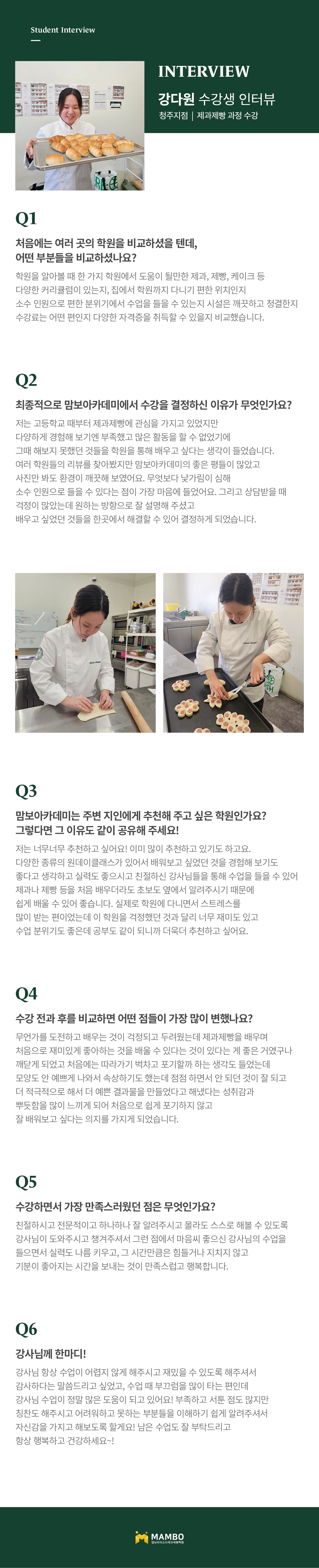 제1조 (개인정보 수집에 대한 동의)맘보교육그룹(이하 회사)는 이용자들이 회사의 개인정보취급방침 또는 이용약관의 내용에 대하여 “동의”버튼 또는 “취소”버튼을 클릭할 수 있는 절차를 마련하여, “동의”버튼을 클릭하면 개인정보 수집에 대해 동의한 것으로 봅니다. 제2조 (개인정보 수집항목) 온라인 문의를 통한 상담을 위해 처리하는 개인정보 항목은 아래와 같습니다. 수집항목 : 성명, 이메일, 전화번호 제3조 (개인정보의 이용목적) 회사는 이용자의 사전 동의 없이는 이용자의 개인 정보를 공개하지 않으며, 원활한 고객상담, 각종 서비스의 제공을 위해 아래와 같이 개인정보를 수집하고 있습니다. 모든 정보는 상기 목적에 필요한 용도 이외로는 사용되지 않으며 수집 정보의 범위나 사용 목적, 용도가 변경될 시에는 반드시 사전 동의를 구할 것입니다. - 성명 : 제품상담에 따른 본인 확인 - 이메일, 전화번호 : 제품상담 및 이벤트 관련 고지사항 전달, 새로운 서비스 및 신상품 정보 제공(DM, SMS, 이메일 등 이용) 이용자는 개인정보의 수집/이용에 대한 동의를 거부할 수 있습니다. 다만, 동의를 거부하는 경우 온라인 문의를 통한 상담은 불가하며 서비스 이용 및 혜택 제공에 제한을 받을 수 있습니다. 제4조 (개인정보의 보유 및 이용기간) 원칙적으로 개인정보 수집 및 이용목적이 달성된 후에는 해당 정보를 지체 없이 파기합니다. 그리고 상법, 전자상거래 등에서의 소비자보호에 관한 법률 등 관계법렵의 규정에 의하여 보존할 필요가 있는 경우 회사는 관계법령에서 정한 일정한 기간 동안 정보를 보관합니다. 이 경우 회사는 보관하는 정보를 그 보관의 목적으로만 이용하며 보존기간은 아래와 같습니다. - 계약 또는 청약철회 등에 관한 기록 : 5년(전자상거래등에서의 소비자보호에 관한 법률) - 소비자의 불만 또는 분쟁처리에 관한 기록 : 3년(전자상거래등에서의 소비자 보호에 관한 법률) - 시용정보의 수집/처리 및 이용 등에 관한 기록 : 3년(신용정보의 이용 및 보호에 관한 법률) - 회사는 귀중한 이용자의 개인정보를 안전하게 처리하며, 유출의 방지를 위하여 다음과 같은 방법을 통하여 개인정보를 파기합니다. - 종이에 출력된 개인정보는 분쇄기로 분쇄하거나 소각을 통하여 파기합니다. - 전자적 파일 형태로 저장된 개인정보는 기록을 재생할 수 없는 기술적 방법을 사용하여 삭제합니다.