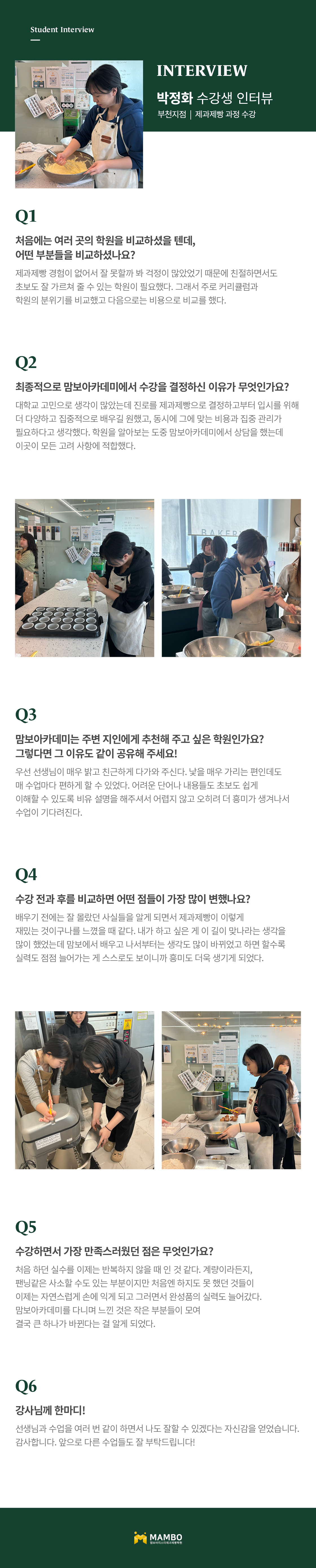 제1조 (개인정보 수집에 대한 동의)맘보교육그룹(이하 회사)는 이용자들이 회사의 개인정보취급방침 또는 이용약관의 내용에 대하여 “동의”버튼 또는 “취소”버튼을 클릭할 수 있는 절차를 마련하여, “동의”버튼을 클릭하면 개인정보 수집에 대해 동의한 것으로 봅니다. 제2조 (개인정보 수집항목) 온라인 문의를 통한 상담을 위해 처리하는 개인정보 항목은 아래와 같습니다. 수집항목 : 성명, 이메일, 전화번호 제3조 (개인정보의 이용목적) 회사는 이용자의 사전 동의 없이는 이용자의 개인 정보를 공개하지 않으며, 원활한 고객상담, 각종 서비스의 제공을 위해 아래와 같이 개인정보를 수집하고 있습니다. 모든 정보는 상기 목적에 필요한 용도 이외로는 사용되지 않으며 수집 정보의 범위나 사용 목적, 용도가 변경될 시에는 반드시 사전 동의를 구할 것입니다. - 성명 : 제품상담에 따른 본인 확인 - 이메일, 전화번호 : 제품상담 및 이벤트 관련 고지사항 전달, 새로운 서비스 및 신상품 정보 제공(DM, SMS, 이메일 등 이용) 이용자는 개인정보의 수집/이용에 대한 동의를 거부할 수 있습니다. 다만, 동의를 거부하는 경우 온라인 문의를 통한 상담은 불가하며 서비스 이용 및 혜택 제공에 제한을 받을 수 있습니다. 제4조 (개인정보의 보유 및 이용기간) 원칙적으로 개인정보 수집 및 이용목적이 달성된 후에는 해당 정보를 지체 없이 파기합니다. 그리고 상법, 전자상거래 등에서의 소비자보호에 관한 법률 등 관계법렵의 규정에 의하여 보존할 필요가 있는 경우 회사는 관계법령에서 정한 일정한 기간 동안 정보를 보관합니다. 이 경우 회사는 보관하는 정보를 그 보관의 목적으로만 이용하며 보존기간은 아래와 같습니다. - 계약 또는 청약철회 등에 관한 기록 : 5년(전자상거래등에서의 소비자보호에 관한 법률) - 소비자의 불만 또는 분쟁처리에 관한 기록 : 3년(전자상거래등에서의 소비자 보호에 관한 법률) - 시용정보의 수집/처리 및 이용 등에 관한 기록 : 3년(신용정보의 이용 및 보호에 관한 법률) - 회사는 귀중한 이용자의 개인정보를 안전하게 처리하며, 유출의 방지를 위하여 다음과 같은 방법을 통하여 개인정보를 파기합니다. - 종이에 출력된 개인정보는 분쇄기로 분쇄하거나 소각을 통하여 파기합니다. - 전자적 파일 형태로 저장된 개인정보는 기록을 재생할 수 없는 기술적 방법을 사용하여 삭제합니다.