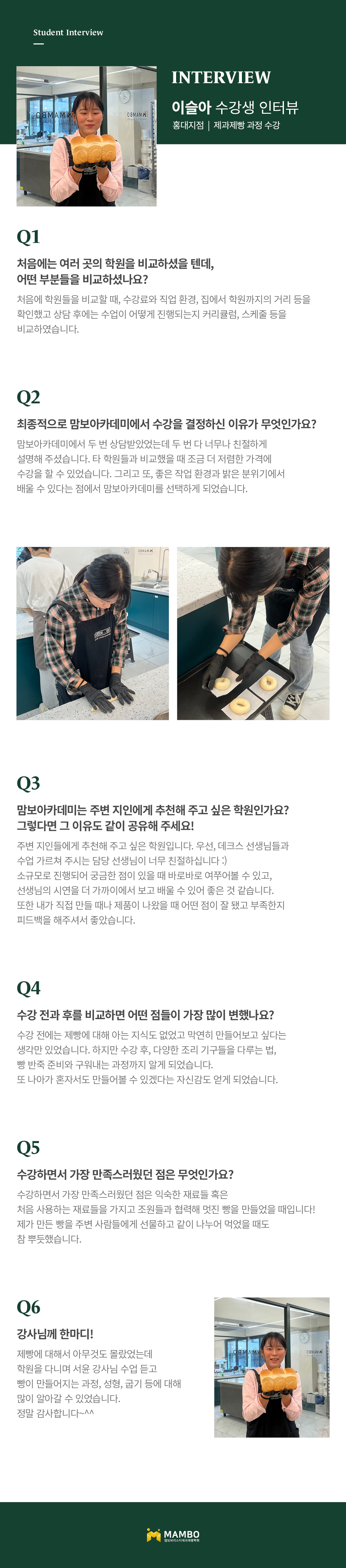제1조 (개인정보 수집에 대한 동의)맘보교육그룹(이하 회사)는 이용자들이 회사의 개인정보취급방침 또는 이용약관의 내용에 대하여 “동의”버튼 또는 “취소”버튼을 클릭할 수 있는 절차를 마련하여, “동의”버튼을 클릭하면 개인정보 수집에 대해 동의한 것으로 봅니다. 제2조 (개인정보 수집항목) 온라인 문의를 통한 상담을 위해 처리하는 개인정보 항목은 아래와 같습니다. 수집항목 : 성명, 이메일, 전화번호 제3조 (개인정보의 이용목적) 회사는 이용자의 사전 동의 없이는 이용자의 개인 정보를 공개하지 않으며, 원활한 고객상담, 각종 서비스의 제공을 위해 아래와 같이 개인정보를 수집하고 있습니다. 모든 정보는 상기 목적에 필요한 용도 이외로는 사용되지 않으며 수집 정보의 범위나 사용 목적, 용도가 변경될 시에는 반드시 사전 동의를 구할 것입니다. - 성명 : 제품상담에 따른 본인 확인 - 이메일, 전화번호 : 제품상담 및 이벤트 관련 고지사항 전달, 새로운 서비스 및 신상품 정보 제공(DM, SMS, 이메일 등 이용) 이용자는 개인정보의 수집/이용에 대한 동의를 거부할 수 있습니다. 다만, 동의를 거부하는 경우 온라인 문의를 통한 상담은 불가하며 서비스 이용 및 혜택 제공에 제한을 받을 수 있습니다. 제4조 (개인정보의 보유 및 이용기간) 원칙적으로 개인정보 수집 및 이용목적이 달성된 후에는 해당 정보를 지체 없이 파기합니다. 그리고 상법, 전자상거래 등에서의 소비자보호에 관한 법률 등 관계법렵의 규정에 의하여 보존할 필요가 있는 경우 회사는 관계법령에서 정한 일정한 기간 동안 정보를 보관합니다. 이 경우 회사는 보관하는 정보를 그 보관의 목적으로만 이용하며 보존기간은 아래와 같습니다. - 계약 또는 청약철회 등에 관한 기록 : 5년(전자상거래등에서의 소비자보호에 관한 법률) - 소비자의 불만 또는 분쟁처리에 관한 기록 : 3년(전자상거래등에서의 소비자 보호에 관한 법률) - 시용정보의 수집/처리 및 이용 등에 관한 기록 : 3년(신용정보의 이용 및 보호에 관한 법률) - 회사는 귀중한 이용자의 개인정보를 안전하게 처리하며, 유출의 방지를 위하여 다음과 같은 방법을 통하여 개인정보를 파기합니다. - 종이에 출력된 개인정보는 분쇄기로 분쇄하거나 소각을 통하여 파기합니다. - 전자적 파일 형태로 저장된 개인정보는 기록을 재생할 수 없는 기술적 방법을 사용하여 삭제합니다.