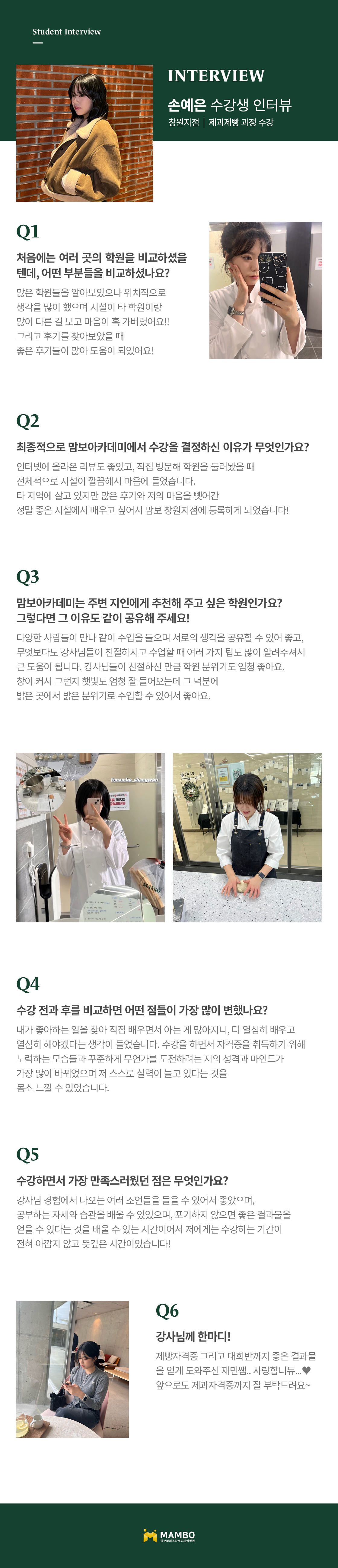 제1조 (개인정보 수집에 대한 동의)맘보교육그룹(이하 회사)는 이용자들이 회사의 개인정보취급방침 또는 이용약관의 내용에 대하여 “동의”버튼 또는 “취소”버튼을 클릭할 수 있는 절차를 마련하여, “동의”버튼을 클릭하면 개인정보 수집에 대해 동의한 것으로 봅니다. 제2조 (개인정보 수집항목) 온라인 문의를 통한 상담을 위해 처리하는 개인정보 항목은 아래와 같습니다. 수집항목 : 성명, 이메일, 전화번호 제3조 (개인정보의 이용목적) 회사는 이용자의 사전 동의 없이는 이용자의 개인 정보를 공개하지 않으며, 원활한 고객상담, 각종 서비스의 제공을 위해 아래와 같이 개인정보를 수집하고 있습니다. 모든 정보는 상기 목적에 필요한 용도 이외로는 사용되지 않으며 수집 정보의 범위나 사용 목적, 용도가 변경될 시에는 반드시 사전 동의를 구할 것입니다. - 성명 : 제품상담에 따른 본인 확인 - 이메일, 전화번호 : 제품상담 및 이벤트 관련 고지사항 전달, 새로운 서비스 및 신상품 정보 제공(DM, SMS, 이메일 등 이용) 이용자는 개인정보의 수집/이용에 대한 동의를 거부할 수 있습니다. 다만, 동의를 거부하는 경우 온라인 문의를 통한 상담은 불가하며 서비스 이용 및 혜택 제공에 제한을 받을 수 있습니다. 제4조 (개인정보의 보유 및 이용기간) 원칙적으로 개인정보 수집 및 이용목적이 달성된 후에는 해당 정보를 지체 없이 파기합니다. 그리고 상법, 전자상거래 등에서의 소비자보호에 관한 법률 등 관계법렵의 규정에 의하여 보존할 필요가 있는 경우 회사는 관계법령에서 정한 일정한 기간 동안 정보를 보관합니다. 이 경우 회사는 보관하는 정보를 그 보관의 목적으로만 이용하며 보존기간은 아래와 같습니다. - 계약 또는 청약철회 등에 관한 기록 : 5년(전자상거래등에서의 소비자보호에 관한 법률) - 소비자의 불만 또는 분쟁처리에 관한 기록 : 3년(전자상거래등에서의 소비자 보호에 관한 법률) - 시용정보의 수집/처리 및 이용 등에 관한 기록 : 3년(신용정보의 이용 및 보호에 관한 법률) - 회사는 귀중한 이용자의 개인정보를 안전하게 처리하며, 유출의 방지를 위하여 다음과 같은 방법을 통하여 개인정보를 파기합니다. - 종이에 출력된 개인정보는 분쇄기로 분쇄하거나 소각을 통하여 파기합니다. - 전자적 파일 형태로 저장된 개인정보는 기록을 재생할 수 없는 기술적 방법을 사용하여 삭제합니다.